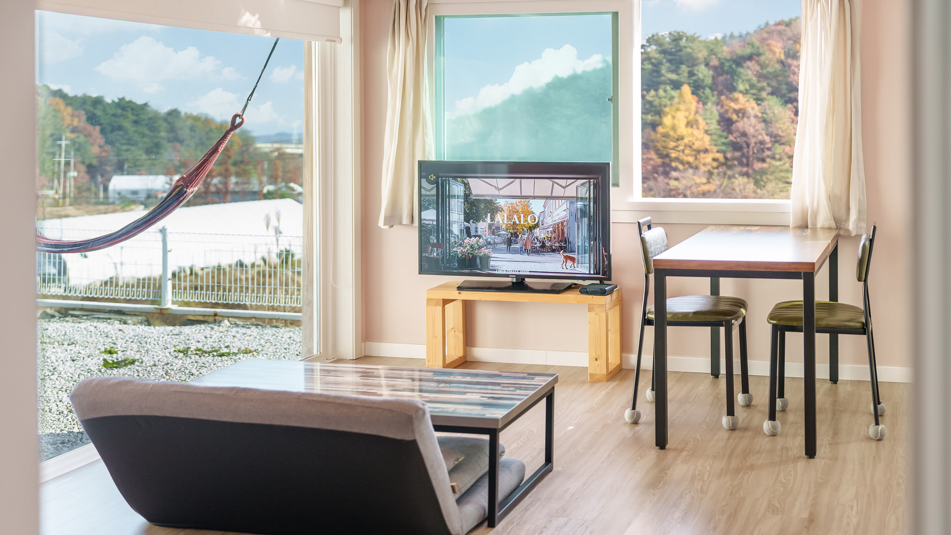 - 집기품목 : 욕실용품, 남녀공용, TV, 금연, 냉장고, 에어컨, 전기밥솥, 취사시설/도구, 바디워시, 비누, 샴푸, 와이파이, 치약, 타월, 드라이기, 세면도구, 슬리퍼, 2인실, 전자레인지, 화재 감지기, 일산화탄소 감지기, 커피포트, 야외 식사 공간, 식탁, 개별바비큐, 바다전망