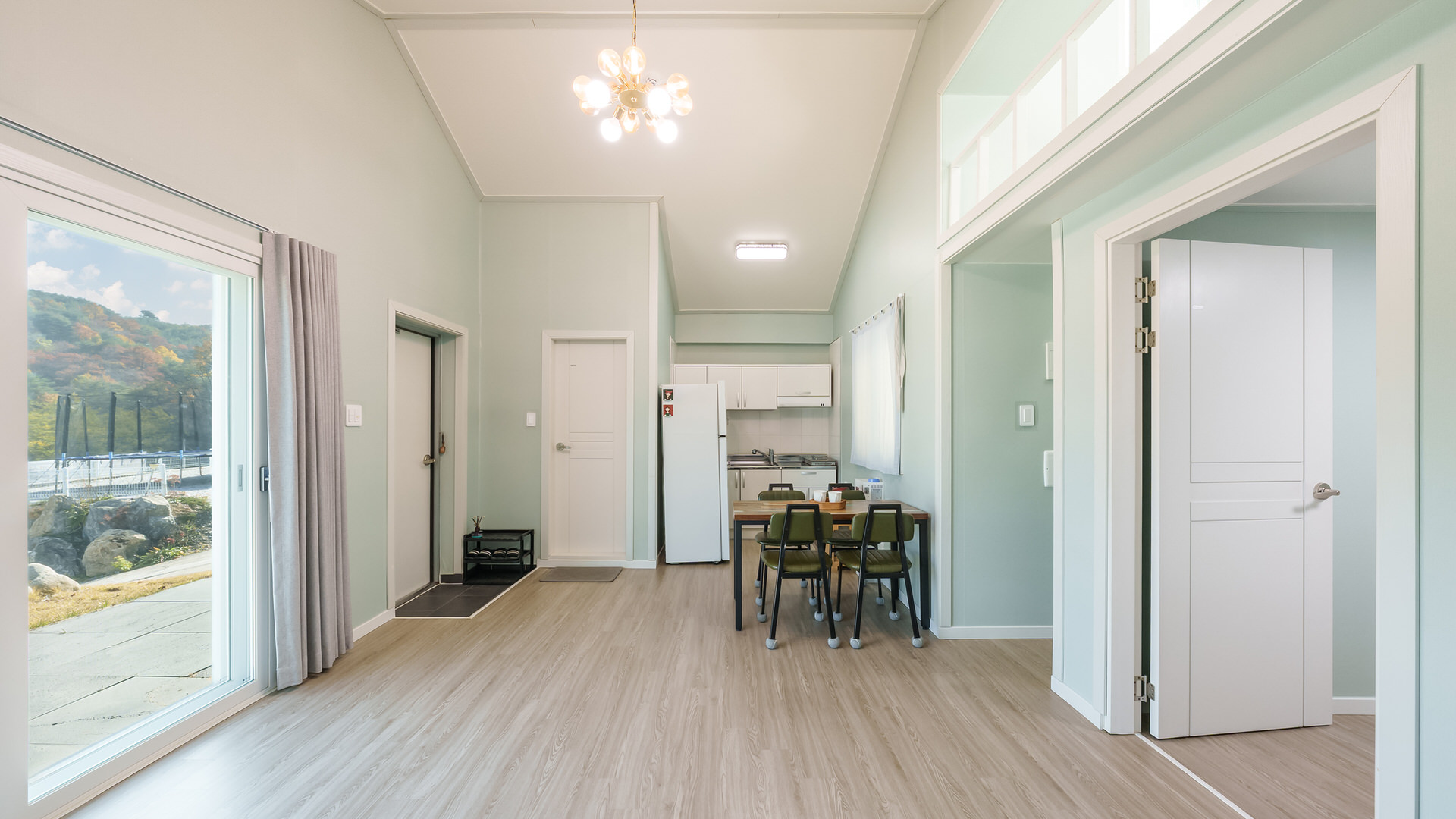 - 집기품목 : 욕실용품, 남녀공용, TV, 금연, 냉장고, 에어컨, 전기밥솥, 취사시설/도구, 타월, 치약, 비누, 샴푸, 세면도구, 바디워시, 드라이기, 린스, 식탁, 야외 식사 공간, 슬리퍼, 일산화탄소 감지기, 화재 감지기, 전자레인지, 와이파이, 가족실, 개별바비큐, 산전망